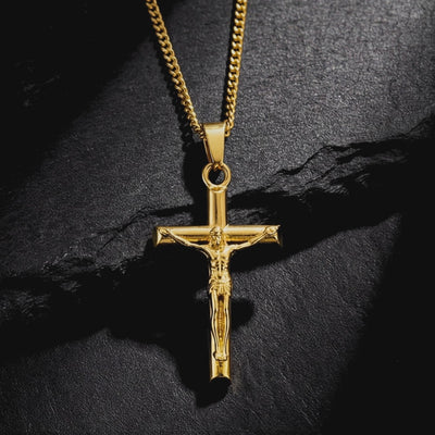 Carry your faith with the Divine Cross Pendant. This striking gold pendant is crafted from durable 316L stainless steel, ensuring it remains tarnish-free and waterproof. Wear it daily as a testament to your beliefs, knowing it's engineered to last a lifetime.