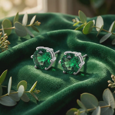 Nature rarely delivers the deep, vivid green of a museum-grade emerald without significant inclusions and internal flaws. These stud earrings feature high-performance Simulated Emerald stones, color-calibrated to the absolute ideal. We engineered the perfect saturation that nature couldn't consistently produce, providing the visual impact of an heirloom for a fraction of the cost.