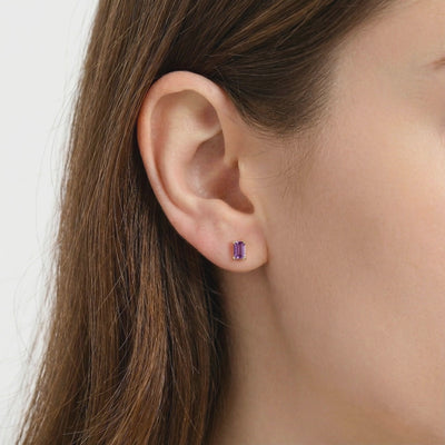 Mined amethysts often vary in shade and clarity. These earrings feature Simulated Amethyst, color-calibrated to the ideal deep violet benchmark. Precision emerald-cut for maximum light return and optical performance, they deliver the visual profile of museum-grade stones without the scarcity markup.