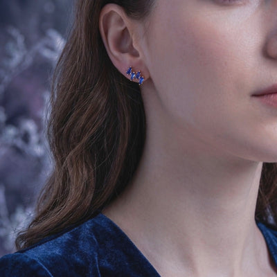 Mined tanzanite is exceptionally rare and often carries a massive price tag for high clarity. These cluster earrings feature Simulated Tanzanite, color-calibrated to capture the elusive deep blue-violet with trichroic shifting hues found in museum-grade stones. We engineered the perfect color nature rarely delivers consistently.