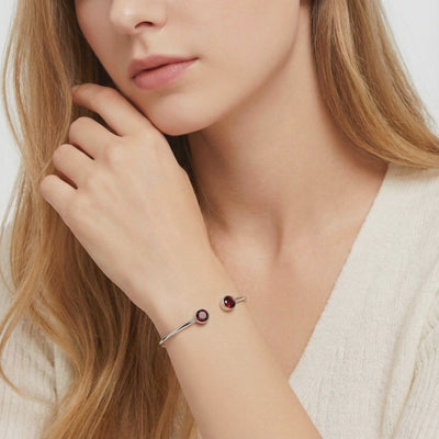 Mined garnets often carry cloudy inclusions that dull their natural fire. We engineered the solution. This January birthstone bracelet features precision-cut Simulated Garnet, color-calibrated to a deep, museum-grade red. Every stone is selected for VVS-level clarity and optical performance that nature rarely achieves consistently.