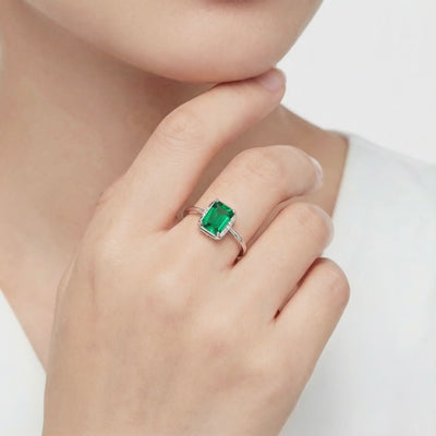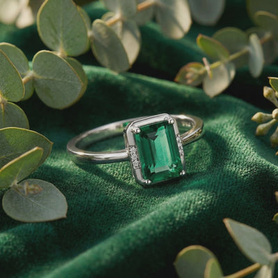 Nature rarely delivers the flawless clarity and rich green saturation found in museum-grade emeralds. This May Birthstone ring features a precision-cut Simulated Emerald, engineered to replicate the ideal visual profile of the world's finest stones without the structural inclusions or cracks common in mined gems.