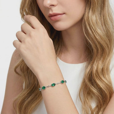 To find a natural emerald with this depth of color and flawless clarity, you would spend thousands on a museum-grade piece. This station bracelet features precision-cut Simulated Emeralds, color-calibrated to capture the ideal "Forest Green" hue that nature rarely delivers without cracks or inclusions.