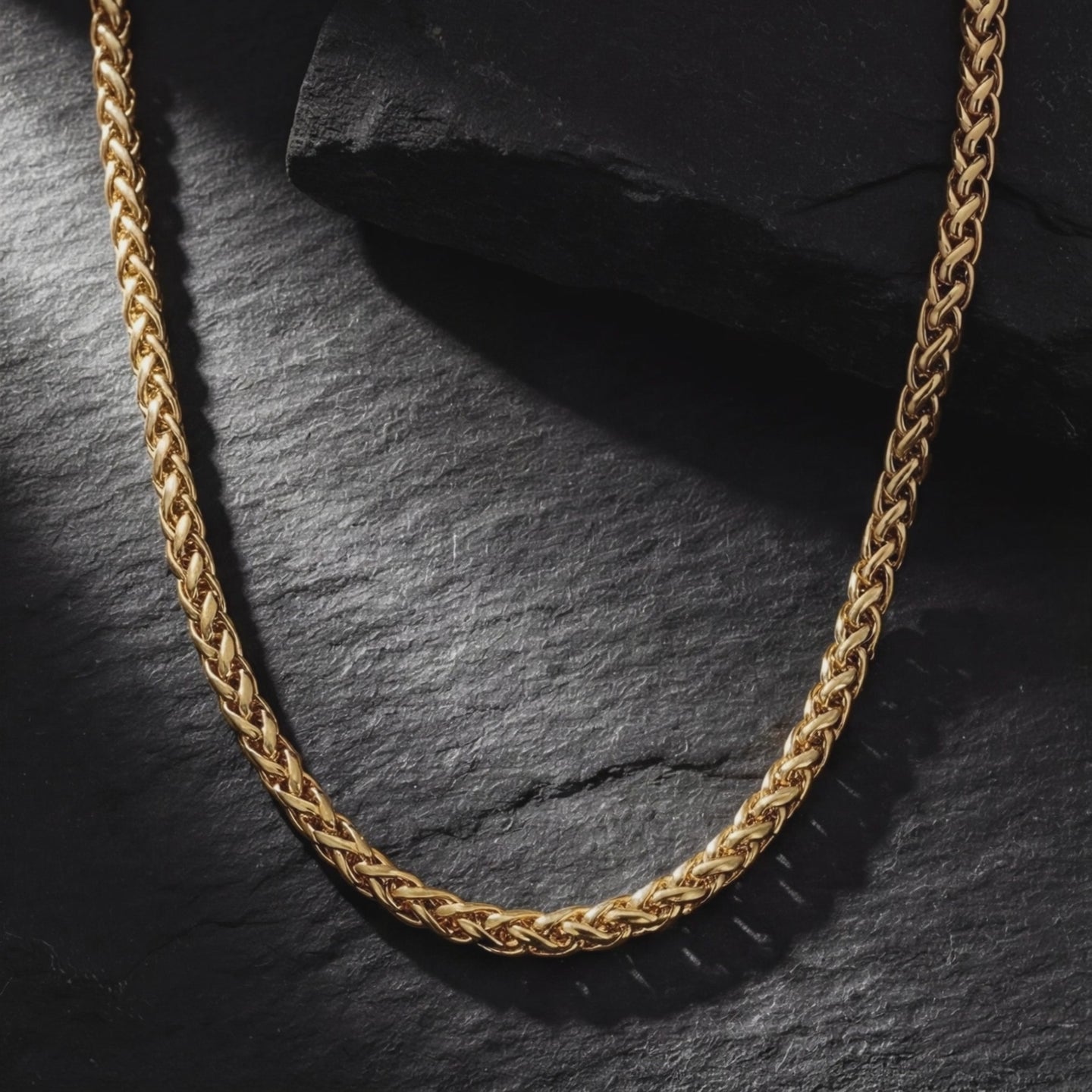 Looking for a chain that's as strong as it is stylish? The Wheatfield Chain in Gold is engineered for life, crafted from premium 316L Swiss Watchmaker Steel. It won't tarnish or fade, even with daily wear. Wear it in the shower, swim in it, or hit the gym – this chain is built to last.